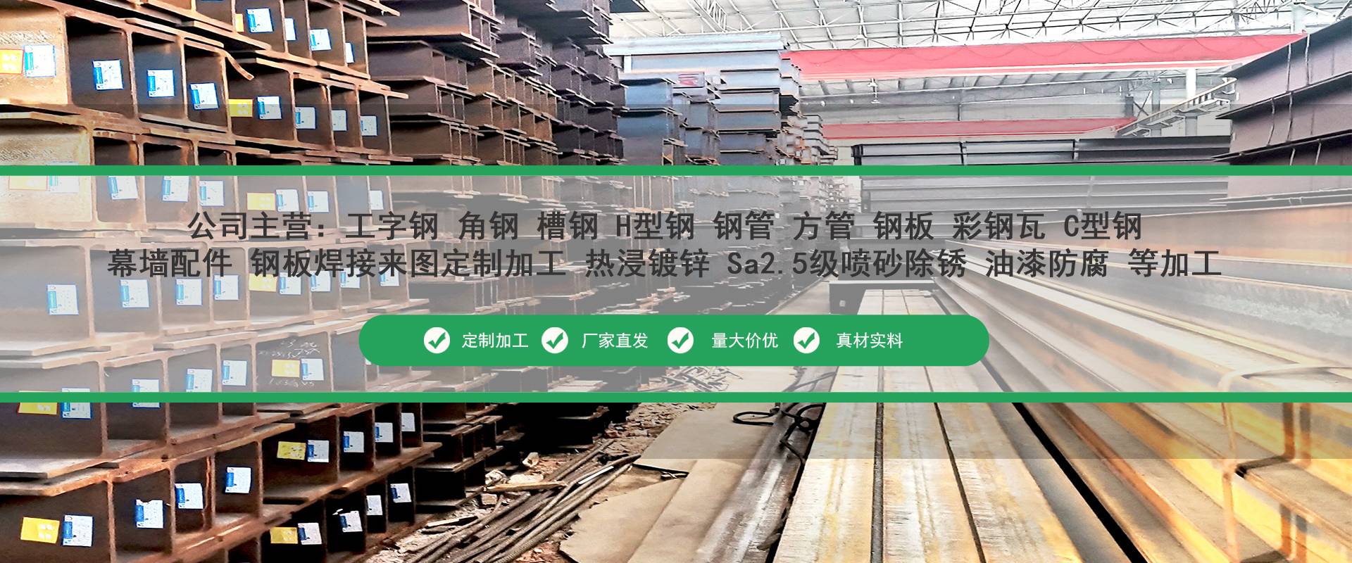 廣東佛山京錦鋼鐵是華南地區(qū)大型鋼鐵貿(mào)易商,廣東華南鋼材現(xiàn)貨批發(fā)交易,主營(yíng)工字鋼、槽鋼、角鋼、H型鋼、鋼管、鋼板等,型號(hào)規(guī)格齊全,批發(fā)價(jià)格更優(yōu),公司配有鋼管防腐加工廠(chǎng),熱浸鍍鋅生產(chǎn)線(xiàn)二條,鋼材Sa2.5級(jí)噴砂,拋丸除銹,高頻焊接、折彎、沖孔、鋼板切割、等配套加工廠(chǎng)歡迎來(lái)電咨詢(xún)。
